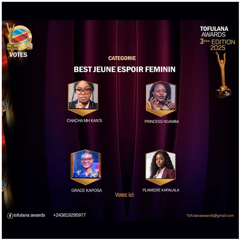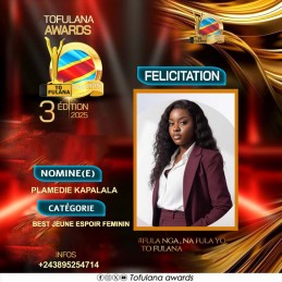 TOFULANA AWARDS (Une structure qui socioculturelle qui prime les valeurs) :Téléphone : +243819295977  E-mail : samuelndjoli05@gmail.com
