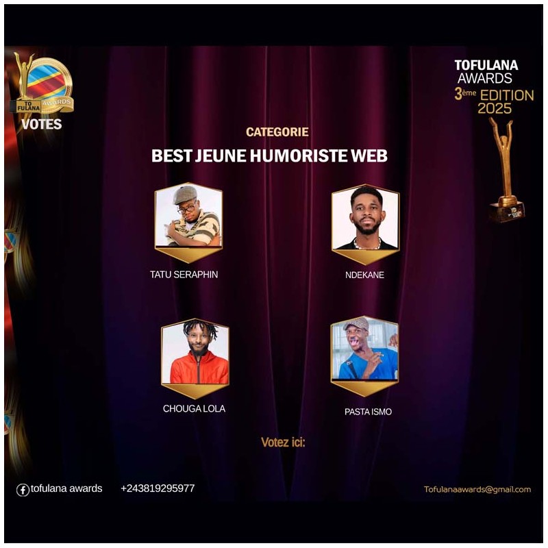 TOFULANA AWARDS (Une structure qui socioculturelle qui prime les valeurs) :Téléphone : +243819295977  E-mail : samuelndjoli05@gmail.com