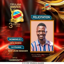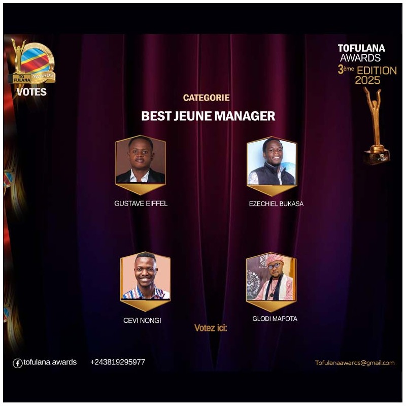 TOFULANA AWARDS (Une structure qui socioculturelle qui prime les valeurs) :Téléphone : +243819295977  E-mail : samuelndjoli05@gmail.com
