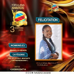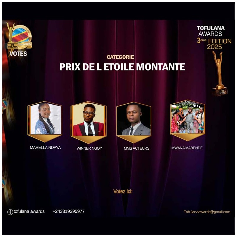 TOFULANA AWARDS (Une structure qui socioculturelle qui prime les valeurs) :Téléphone : +243819295977  E-mail : samuelndjoli05@gmail.com