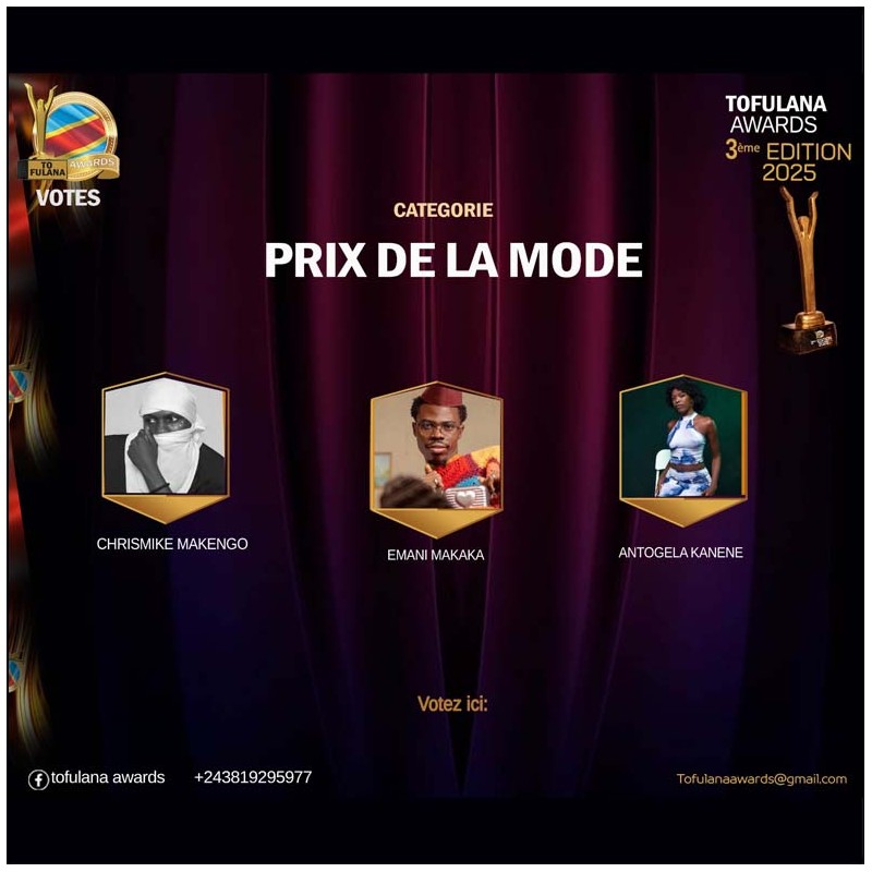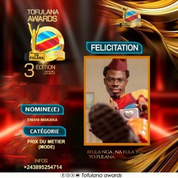 TOFULANA AWARDS (Une structure qui socioculturelle qui prime les valeurs) :Téléphone : +243819295977  E-mail : samuelndjoli05@gmail.com