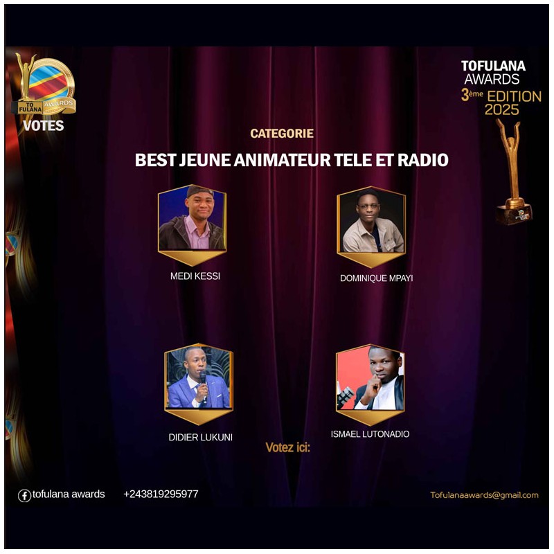 TOFULANA AWARDS (Une structure qui socioculturelle qui prime les valeurs) :Téléphone : +243819295977  E-mail : samuelndjoli05@gmail.com